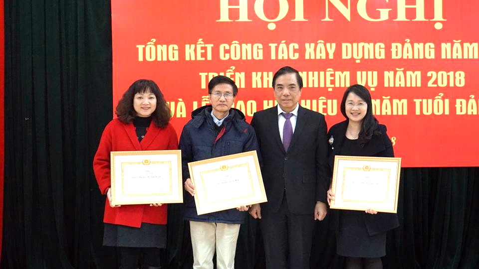 Tiếp đó, thay mặt Đảng ủy, PGS, TS Đào Thị Thu Giang - Phó Bí thư Đảng ủy đã đọc quyết định khen thưởng cho 3 chi bộ trong sạch vững mạnh tiêu biểu, 5 đảng viên xuất sắc năm 2017 và 64 đảng viên có nhiều đóng góp cho công tác Đảng của Đảng bộ. PGS, TS Bùi Anh Tuấn - Bí thư Đảng ủy đã trao tặng giấy khen cho các Chi bộ, Đảng viên được khen thưởng.